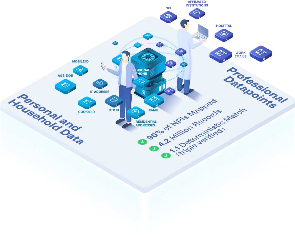Our proprietary NPI-to-Consumer Data Graph allows us to “talk to” ad networks in order to target and receive data by NPI.